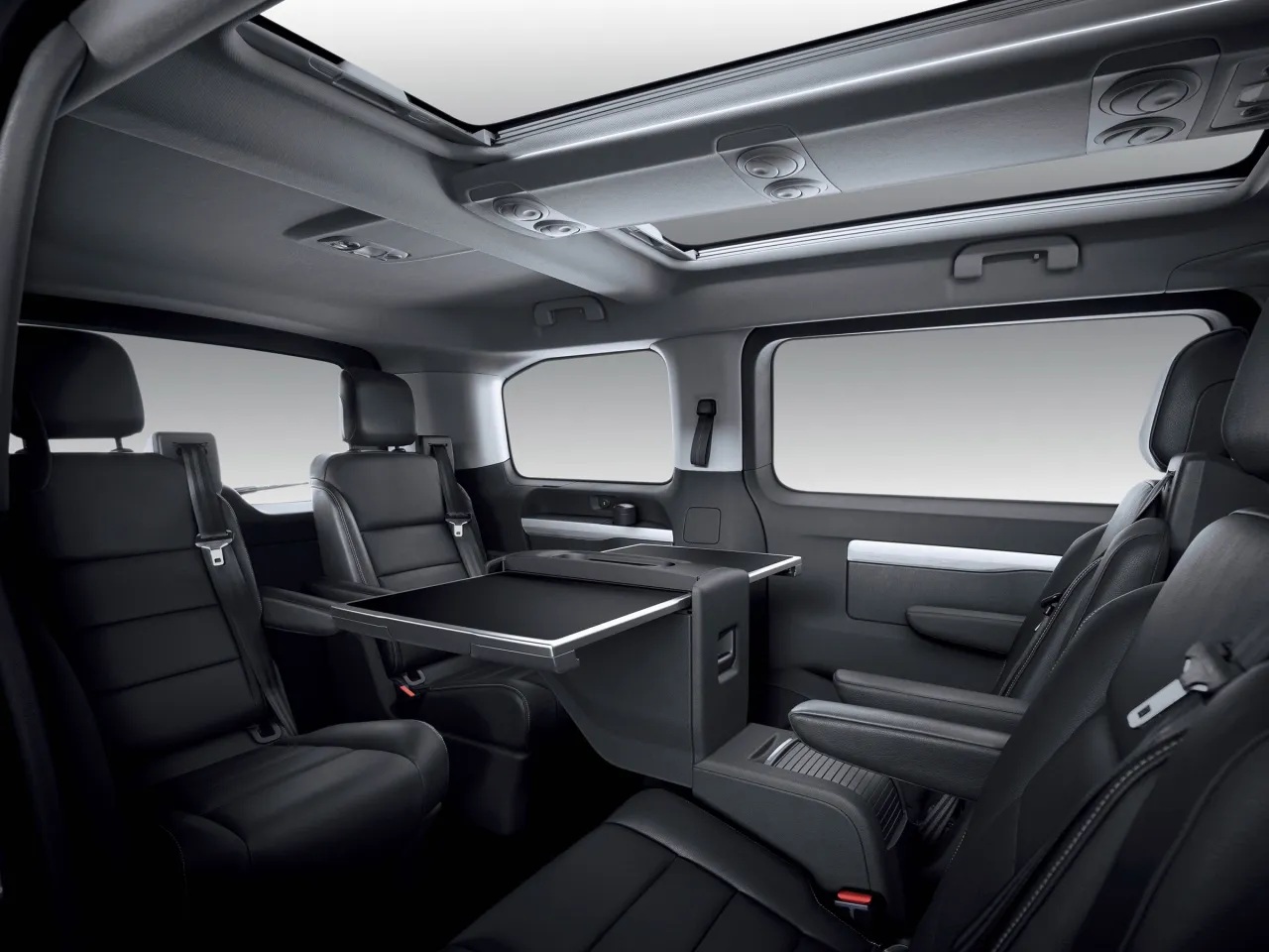 - Сиденья второго ряда для трёх пассажиров, складывающиеся и съёмные без инструмента, на рейлингах: сдвоенное сиденье слева с индивидуальным профилем, Isofix; индивидуальное сиденье справа